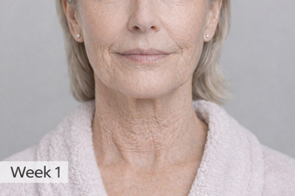 Mange oplever forbedringer i hudens udseende efter nogle ugers regelmæssig brug. Resultater udvikler sig gradvist og kan variere afhængigt af hudtype og brug.